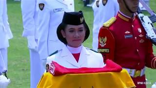 Paskibraka 2019 yang bertugas sebagai pembawa baki adalah Salma El Mutafaqqiha Putri Achzaabi dari Jawa Tengah. Salma menerima Sang Saka Merah ...